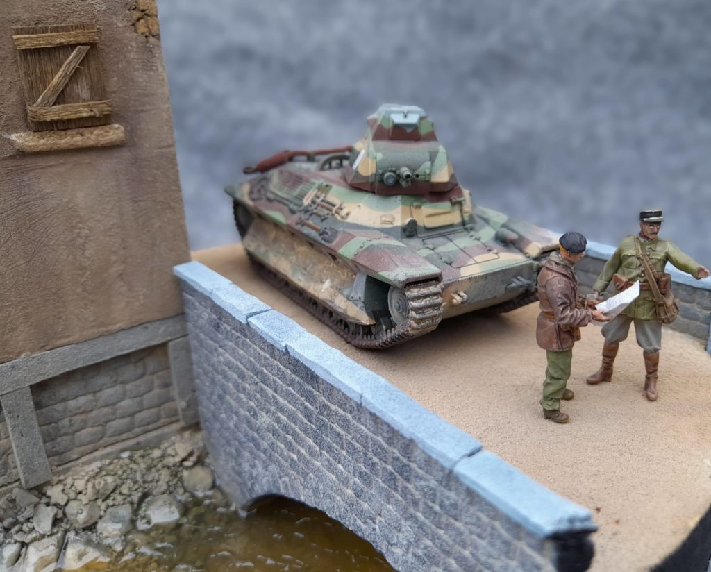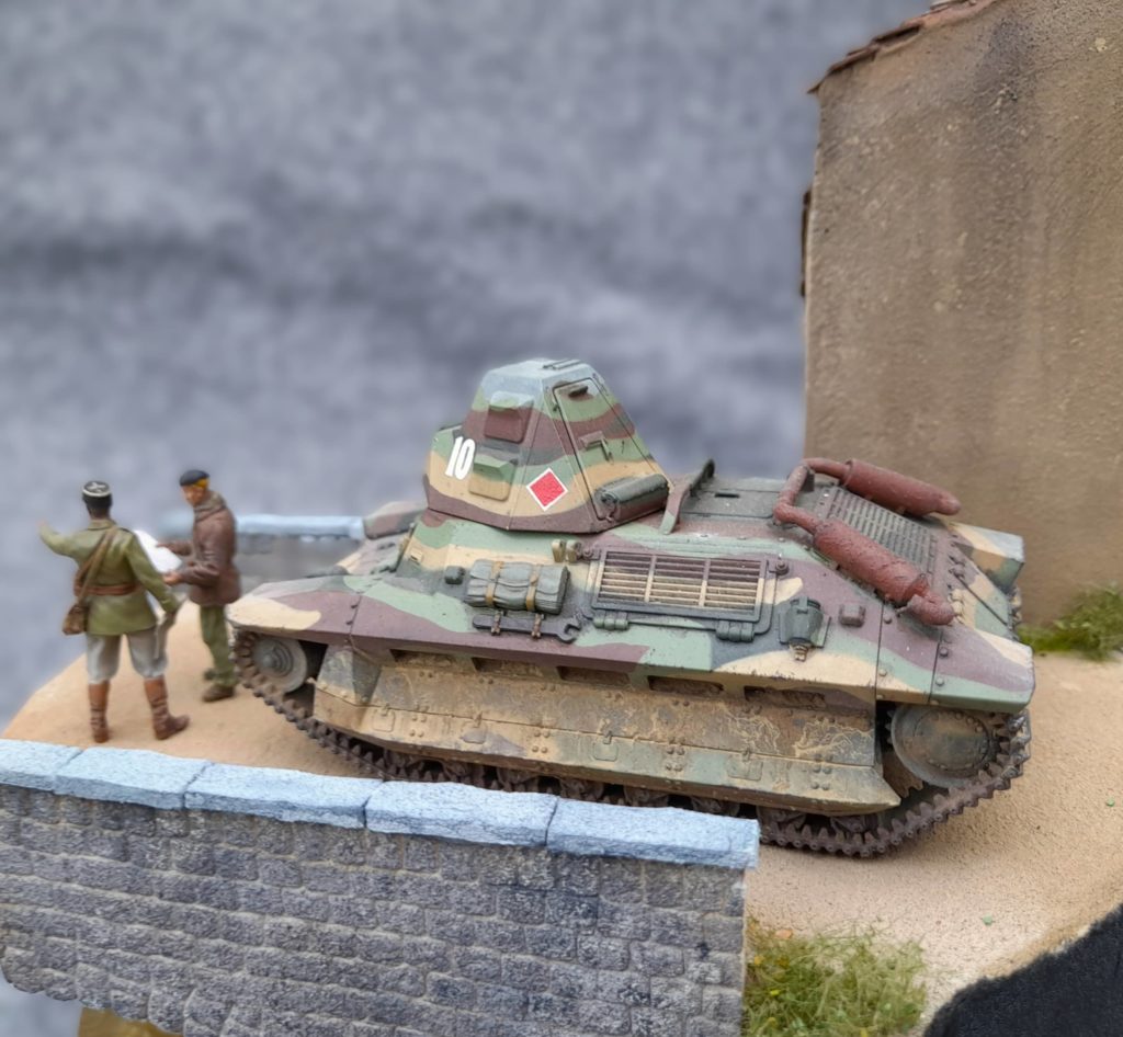 Ce FCM 36 perdu dans la campagne de France est à la base un kit wargame au 1/48 qui se monte très facilement puisque c’est des blocs. Il est peint en XF58 – XF60 éclaircie -XF71 et XF64 avec lavis-brossage, pigment et un earth effect dilué. Un truc qui se fait en 4 soirs …