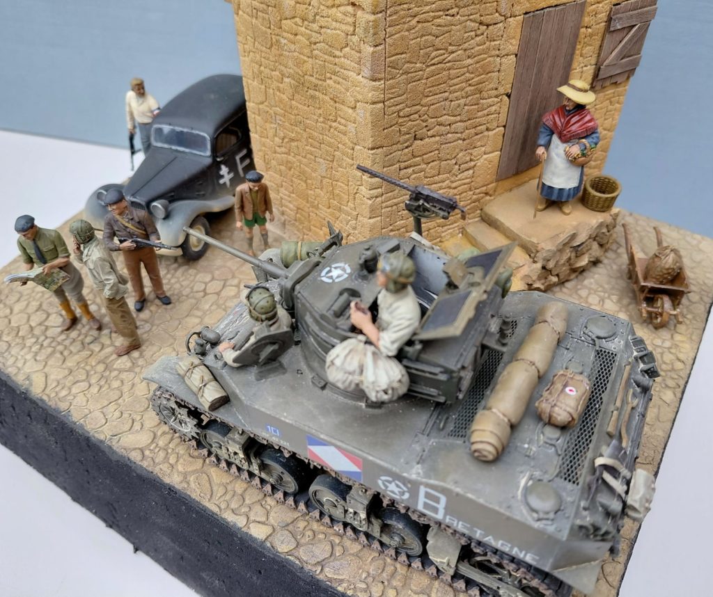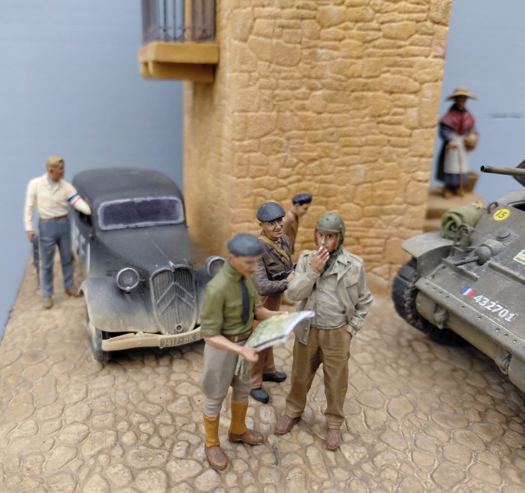 Les figurines sont variés, Civil MK35 et ICM, résistant MB et équipage est un mix de Tamiya, Alpine et Warrior avec des changements de têtes verlinden et des ajustement pour faire rentrer tt le monde.
