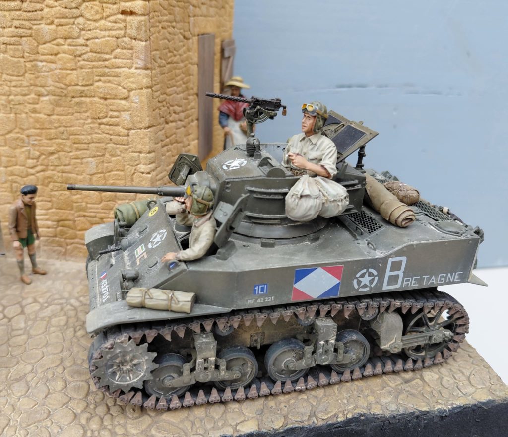 Le M5 est de chez AFV Club d’un qualité correct et comme pour beaucoup de kit de cette marque, des petits défaut d’ajustement. Ayant habimé les chenille d’origne, j’ai du ressortir celle d’un M3 de la même marque. Les décalques viennent de chez Histopic qui reste le seul à proposer des marquages franco-français.